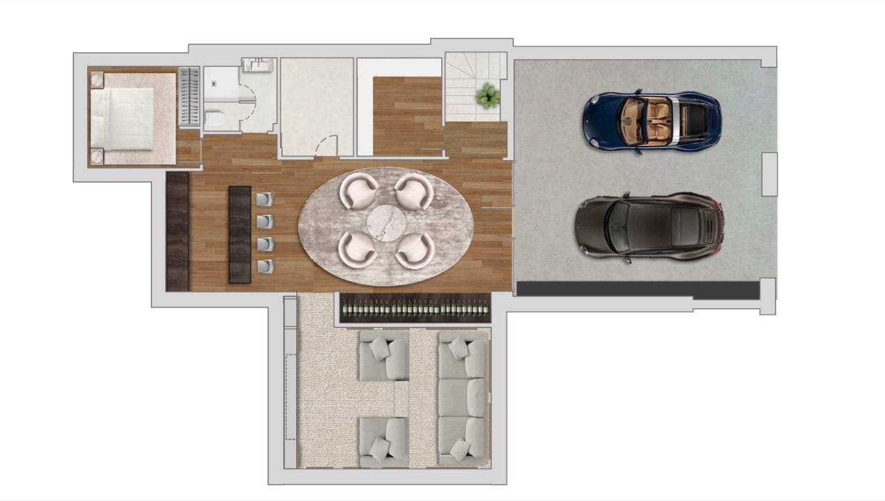Met een oppervlakte van 972 m² op een perceel van 1.016 m² biedt Villa Zerelle ruime, zonovergoten interieurs, uitgestrekte terrassen en een adembenemend uitzicht op zee, waardoor het een rustig toevluchtsoord is voor wie op zoek is naar zowel ontspanning als vermaak. De villa beschikt over vijf ruime slaapkamers, elk met een eigen ensuite badkamer, evenals een gastentoilet. De open benedenverdieping is ontworpen voor modern wonen, met een verfijnde woonkamer, een op maat ontworpen Deense keuken uitgerust met high-end Gaggenau en Siemens apparatuur, Dekton werkbladen, en strak gelakte kasten. Grenzend aan de keuken is een elegante eethoek, perfect voor intieme diners of grotere bijeenkomsten, en een gezellige tv-lounge, die een comfortabele ruimte biedt om te ontspannen.