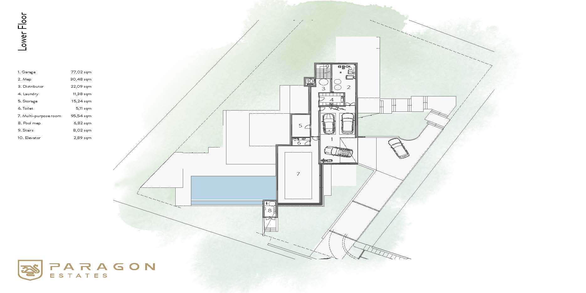 Defined by modern architectural lines, this unique 4-bedroom villa is spread across 3 floors respecting the natural shape of the plot.